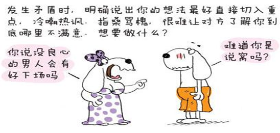 2、知道吵什么。不論夫妻煩惱的是什么,應(yīng)該為具體的事情吵。比如一個(gè)發(fā)怒的妻子,是真的為丈夫邋遢、衣服亂扔而吵架,還是在懷疑他的加班呢?同樣,一個(gè)發(fā)怒的丈夫是真的為妻子管教子女的方式而吵架,還是為了妻子不夠關(guān)心和尊重而煩惱呢?