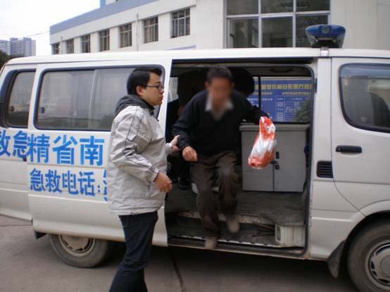 2009年11月17日中心專家張勇輝等3人到官渡區(qū)矣六鄉(xiāng)接1名患者到我院免費治療。