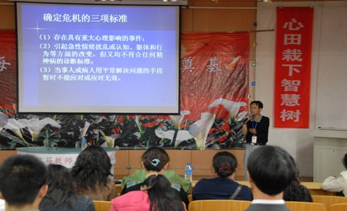 2008年6月2日下午,我院組織專家深入接收四川安縣地震災(zāi)區(qū)學(xué)生的馬街中心小學(xué)(該校接收二至五年級學(xué)生45名,男生24名、女生21名),對該校83名教師進(jìn)行“災(zāi)后學(xué)生心理危機(jī)干預(yù)”培訓(xùn)。培訓(xùn)由昆明市心理危機(jī)研究與干預(yù)中心唐巖副主任醫(yī)師主講。培訓(xùn)當(dāng)天云南電視臺――都市條形碼和昆明電臺――陽光頻率零距離欄目記者應(yīng)邀參加并進(jìn)行全程跟蹤采訪報道。