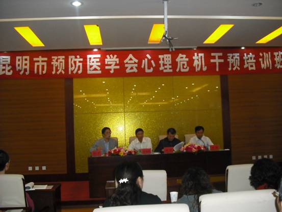 15日上午9點在兵器療養(yǎng)院9號會議廳舉行了開幕式,由市疾病預防控制中心副主任邱俊主持,昆明市衛(wèi)生局疾病預防控制處處長、昆明市預防醫(yī)學會副會長楊韜代表市衛(wèi)生局出席開幕式,并講話,楊處長講述了在當前各種危機事件和社會應激事件多發(fā)的形勢下舉辦這個危機干預培訓班的重要性和必要性,并希望通過對從事疾病預防控制工作的人員進行危機干預知識的專業(yè)培訓,在以后的工作中,能夠識別危機引發(fā)的心理影響,將危機干預技術應用到工作中,更好的幫助群眾,從心理健康上做到預防保健。云南省精神衛(wèi)生中心副院長蔣陸友、昆明市心理危機研究與干預中心執(zhí)行主任阮冶在主席臺上就座并講話,預祝會議圓滿成功。此次培訓班教師全部來自于云南省精神衛(wèi)生中心,昆明市心理危機研究與干預中心的心理危機干預專家,他們的授課內容如下: