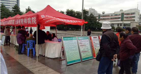 2018年10月10日是第27個(gè)“世界精神衛(wèi)生日”,為深入貫徹落實(shí)黨的十九大精神和《“健康中國(guó)2030”規(guī)劃綱要》要求,普及精神衛(wèi)生知識(shí),倡導(dǎo)社會(huì)關(guān)注和提升全民精神疾病及心理健康意識(shí),云南省精神病醫(yī)院聯(lián)合昆明市心理危機(jī)研究與干預(yù)中心于今天早上9:00-11:00在西山區(qū)碧雞廣場(chǎng)參與開(kāi)展了廣場(chǎng)義診和健康宣傳活動(dòng),整個(gè)活動(dòng)在廣大群眾的積極參與下圓滿結(jié)束。
