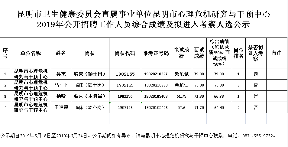 公示期自2019年6月18日至2019年6月24日。公示期間如有異議,請(qǐng)與報(bào)考單位聯(lián)系。