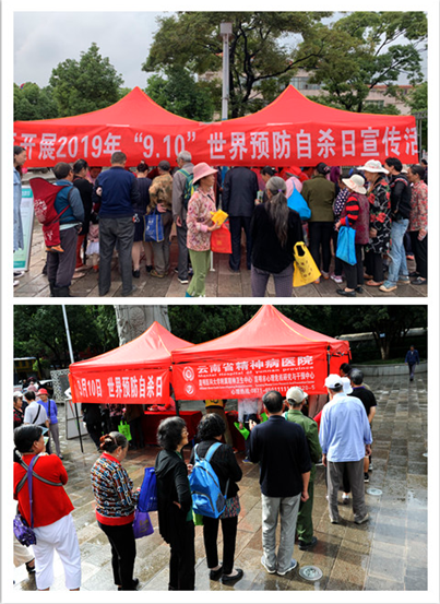 2019年是第17個(gè)“世界預(yù)防自殺日”, 為引導(dǎo)廣大人民群眾正視精神和心理問(wèn)題,預(yù)防自殺和降低自殺率,2019年9月10日上午,云南省精神病醫(yī)院、昆明市心理危機(jī)研究與干預(yù)中心聯(lián)合呈貢區(qū)和西山區(qū)疾病預(yù)防控制中心,分別在呈貢區(qū)縣城廣場(chǎng)和西山區(qū)碧雞廣場(chǎng)開展“世界預(yù)防自殺日”宣傳活動(dòng)暨紅色義診、創(chuàng)建“全國(guó)文明城市”志愿者活動(dòng)。