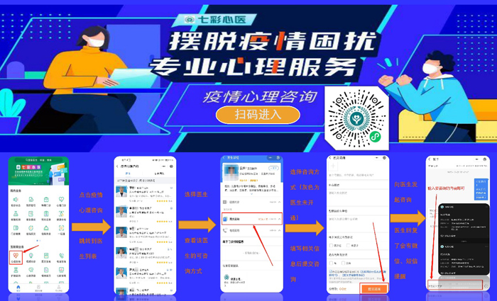 2、通過微信小程序搜索“七彩心醫(yī)”或通過微信搜索“云南省精神病醫(yī)院”公眾號或通過掃碼小程序和公眾號二維碼,然后找到“疫情心理咨詢”專題模塊,點擊進行免費心理咨詢。