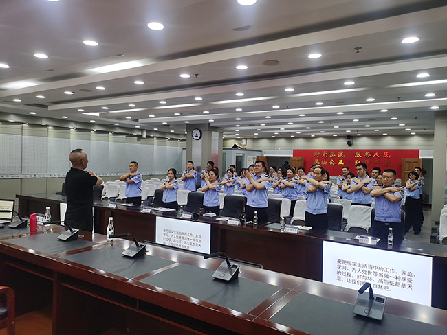 云南省精神病醫(yī)院、昆明市心理救援隊專家督導(dǎo)、唐巖主任醫(yī)師,講授了題為“職業(yè)壓力與對策”的專題講座,通過幽默詼諧的方式向全市公安民警呈現(xiàn)了警察這支特殊隊伍的職業(yè)壓力及其相應(yīng)的處理應(yīng)對方式,并現(xiàn)場帶領(lǐng)聽課的公安民警進(jìn)行身體放松訓(xùn)練,讓學(xué)員切身感受到心理調(diào)節(jié)方法對自身壓力的釋放作用。