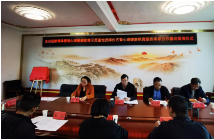 2023年11月28日,我院在東川區(qū)教體局順利舉行了心理健康教育示范基地授牌儀式暨雙方共建心理健康服務(wù)體系合作基地的揭牌儀式。參加此次會議的有:云南省精神病醫(yī)院副院長陳志祥、云南省精神病醫(yī)院副院長高長青、東川區(qū)教體局副局長馬順花、東川區(qū)教體局副局長夏耘、東川區(qū)教體局總督學(xué)蔡志勇、云南省精神病醫(yī)院康復(fù)治療中心主任合浩、昆明市心理危機研究與干預(yù)中心助理研究員楊婷、東川區(qū)教體局職工及東川區(qū)心理學(xué)相關(guān)專業(yè)教師。