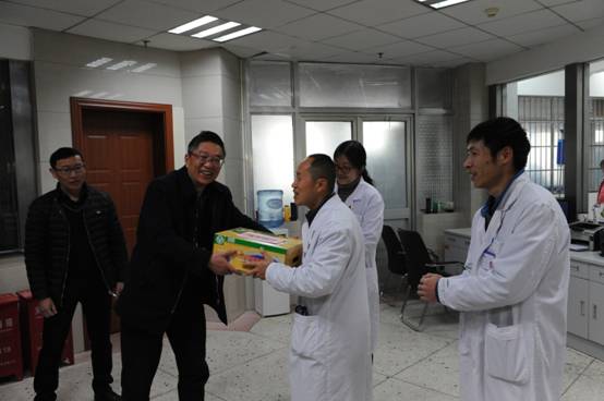 2019年2月3日上午8:30,在醫(yī)院黨委書(shū)記覃東明同志、院長(zhǎng)、黨委副書(shū)記阮冶同志的帶領(lǐng)下,由醫(yī)院班子成員、職能科室主要負(fù)責(zé)人組成的兩個(gè)慰問(wèn)小組分別深入醫(yī)院各臨床、醫(yī)技、行政后勤科室,對(duì)堅(jiān)守一線(xiàn)的醫(yī)護(hù)技人員進(jìn)行春節(jié)慰問(wèn)。