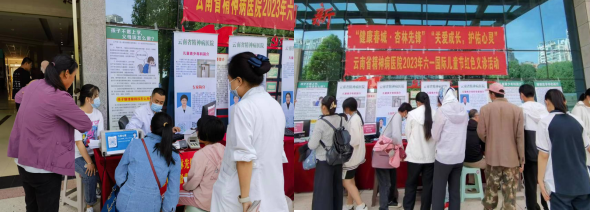 六一上午08:30,在醫(yī)院黨委大力支持下以及多部門的幫助與協(xié)調(diào)下,義診活動在云南省精神病醫(yī)院院前廣場啟動。義診專家為云南省精神病醫(yī)院兒少睡眠黨支部的專家團隊,包括兒童青少年科楊麗主任、雷杰鵬副主任、林海波副主任醫(yī)師、李勝巧主治醫(yī)師、張體苑主治醫(yī)師、呂鑫主治醫(yī)師,義診范圍包括兒童青少年行為問題、學(xué)習(xí)困難、情緒問題、發(fā)育性障礙、精神病性障礙和其他心理問題,如進食障礙、睡眠問題、社會適應(yīng)問題、性生理心理障礙、親子關(guān)系及家長的心理咨詢與指導(dǎo)等。