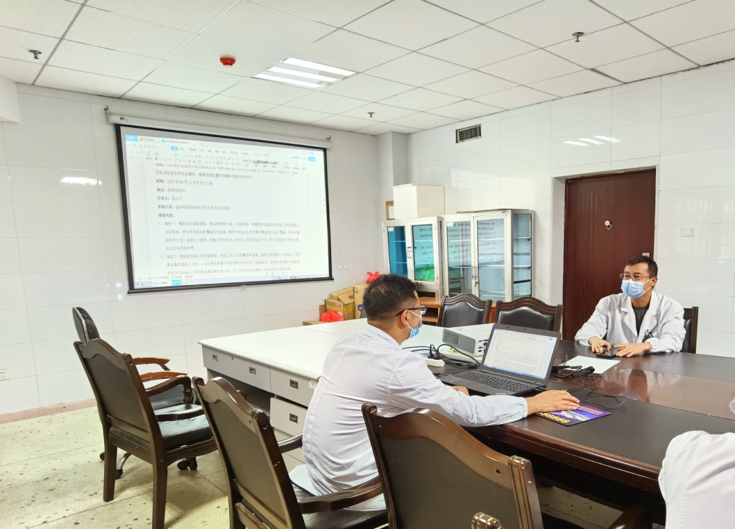 為全面提升“一支部一特色”的黨建品牌,將業(yè)務(wù)工作中的重點(diǎn)事項(xiàng)、疑難事項(xiàng)作為“問(wèn)計(jì)”的主要內(nèi)容,動(dòng)員黨員群策群力,發(fā)揮基層黨支部在科室業(yè)務(wù)工作中的戰(zhàn)斗堡壘作用和黨員的先鋒模范作用,針對(duì)實(shí)驗(yàn)室生物安全問(wèn)題開(kāi)展“問(wèn)計(jì)黨組織”活動(dòng)。實(shí)驗(yàn)室安全無(wú)小事,為加強(qiáng)實(shí)驗(yàn)室生物安全管理工作,提升實(shí)驗(yàn)室工作人員專業(yè)素質(zhì),有效預(yù)防、快速應(yīng)對(duì)、及時(shí)控制實(shí)驗(yàn)室生物安全事件,提高現(xiàn)場(chǎng)處置突發(fā)事件的能力和水平。2023年6月12日下午,在支部書(shū)記張少川和醫(yī)學(xué)檢驗(yàn)科副主任張海慶兩位同志的共同帶領(lǐng)下,醫(yī)學(xué)檢驗(yàn)科全體黨員同志和科室工作人員針對(duì)實(shí)驗(yàn)室生物安全管理工作,實(shí)驗(yàn)室突發(fā)事件處置預(yù)案、流程進(jìn)行修訂和學(xué)習(xí)。