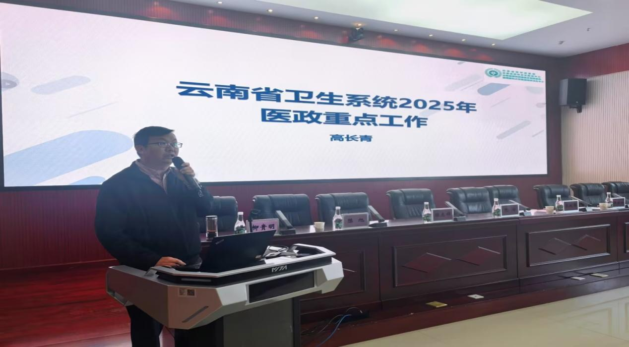 緊接著,黨委委員、副院長高長青以云南省衛(wèi)生系統(tǒng)2025年醫(yī)政重點工作為藍圖,為醫(yī)院2025年的發(fā)展描繪了一條“強基層、補短板、重預防”的主線。他表示我院作為省級精神衛(wèi)生龍頭單位,今年將重點推進國家區(qū)域醫(yī)療中心申報、監(jiān)護室(PICU病房)建設、重點實驗室創(chuàng)建三大攻堅任務,同時開展殯葬領域?qū)m椪?、檢驗結果互認等民生實事,推動優(yōu)質(zhì)資源下沉到8個州市22個縣區(qū)。希望全體同仁以“三甲”標準為引領,以“國考”A級為新起點,在學科建設、科研創(chuàng)新、服務升級上實現(xiàn)新突破,為建設健康云南貢獻精衛(wèi)力量!