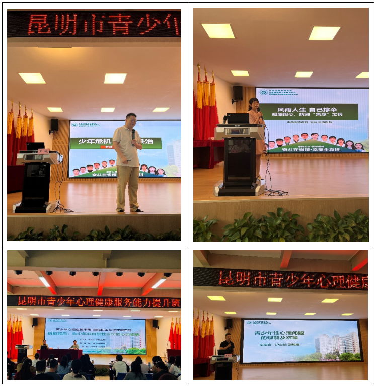 胡怡科副主任、柴家金護士長、蔣欽梅副主任醫(yī)師以及祁敏、何麗、劉飛、夏堅、張芳芳醫(yī)生分別就常見精神疾病癥狀、認知行為療法、青少年人格及焦慮/強迫的識別與處置、青少年重精的識別、自我傷害系統(tǒng)家庭理論以及青少年性心理問題進行了系統(tǒng)講授。