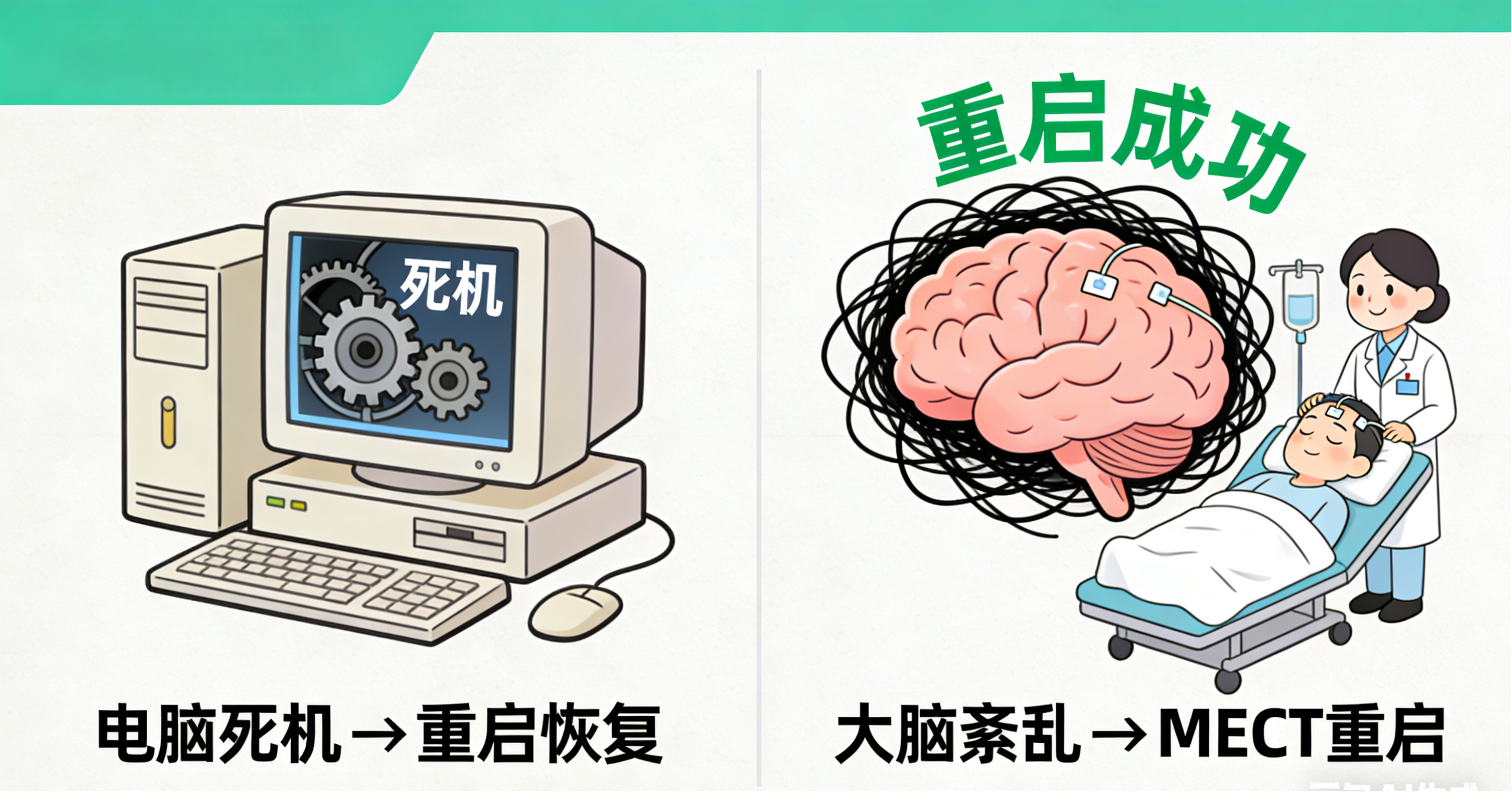 簡單來說:MECT不是讓人“變傻”,而是幫大腦從“死機(jī)”狀態(tài)中“重啟”,讓真正的你重新回來。