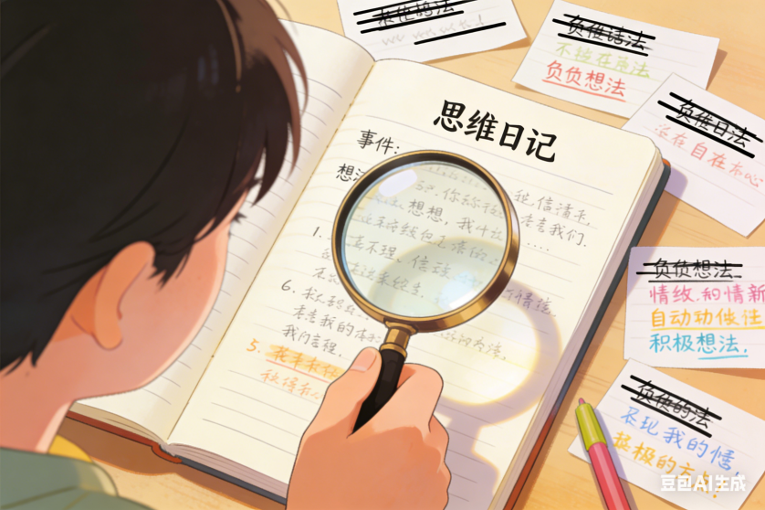 第一步,捕捉自動化思維。當(dāng)負面情緒襲來時,立刻停下并追問自己:“此刻我腦子里正在想什么?”把模糊的感受轉(zhuǎn)化為具體的想法,比如“感到焦慮”要細化為“我擔(dān)心明天的演講會搞砸”??梢詼蕚湟槐尽八季S日記”,記錄下事件、想法和情緒,讓隱藏的認知無所遁形。