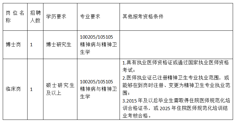 云南省精神病醫(yī)院2025年開展“夢想不遠 昆明首選”全國引才活動后備人才招聘崗位信息表