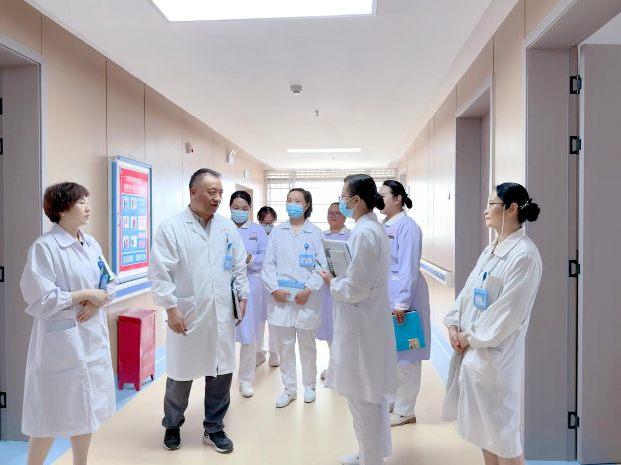 2025年7月22日,陳志祥副院長帶領(lǐng)護(hù)理部對(duì)免陪照護(hù)試點(diǎn)病區(qū)進(jìn)行工作調(diào)研,了解服務(wù)流程與規(guī)范、醫(yī)療護(hù)理員的配備與資質(zhì)、服務(wù)質(zhì)量與效果、患者滿意度與家屬反饋及安全與風(fēng)險(xiǎn)防范等方面的工作開展情況,陳志祥副院長表示:無陪護(hù)病房工作開展,確?;颊甙踩那疤嵯?,同步提升服務(wù)質(zhì)量;打造試點(diǎn)科室為院內(nèi)標(biāo)桿科室;試點(diǎn)工作要落實(shí)到位,體現(xiàn)對(duì)患者的關(guān)愛,讓患者及家屬感受到歸屬感;試點(diǎn)工作人員的職責(zé)、職能要落實(shí)、細(xì)化。