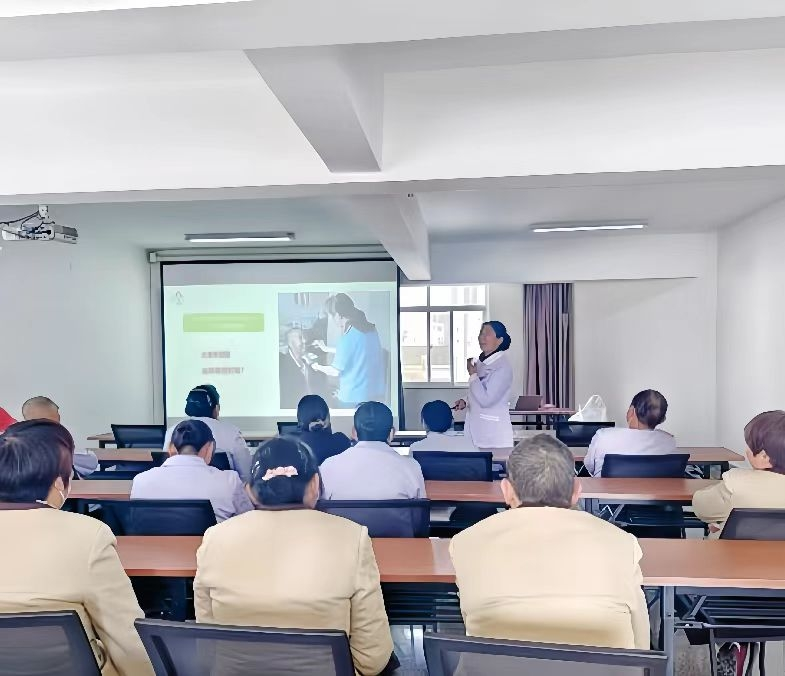 結(jié)合臨床照護(hù)難點(diǎn)要點(diǎn),定期開展醫(yī)療護(hù)理員主題培訓(xùn)計(jì)劃,如:職業(yè)防護(hù)、感控規(guī)范、基礎(chǔ)照護(hù)技能,安全防范措施、精神疾病患者??普兆o(hù)技能等。培訓(xùn)采用仿真教具,通過案例演練的直觀方式對(duì)醫(yī)療護(hù)理員進(jìn)行培訓(xùn),確保能夠以專業(yè)的技能科學(xué)地照顧患者,助力患者盡快康復(fù)。