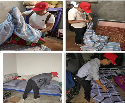 為貧困戶鋪上醫(yī)院捐贈的嶄新的床單被套