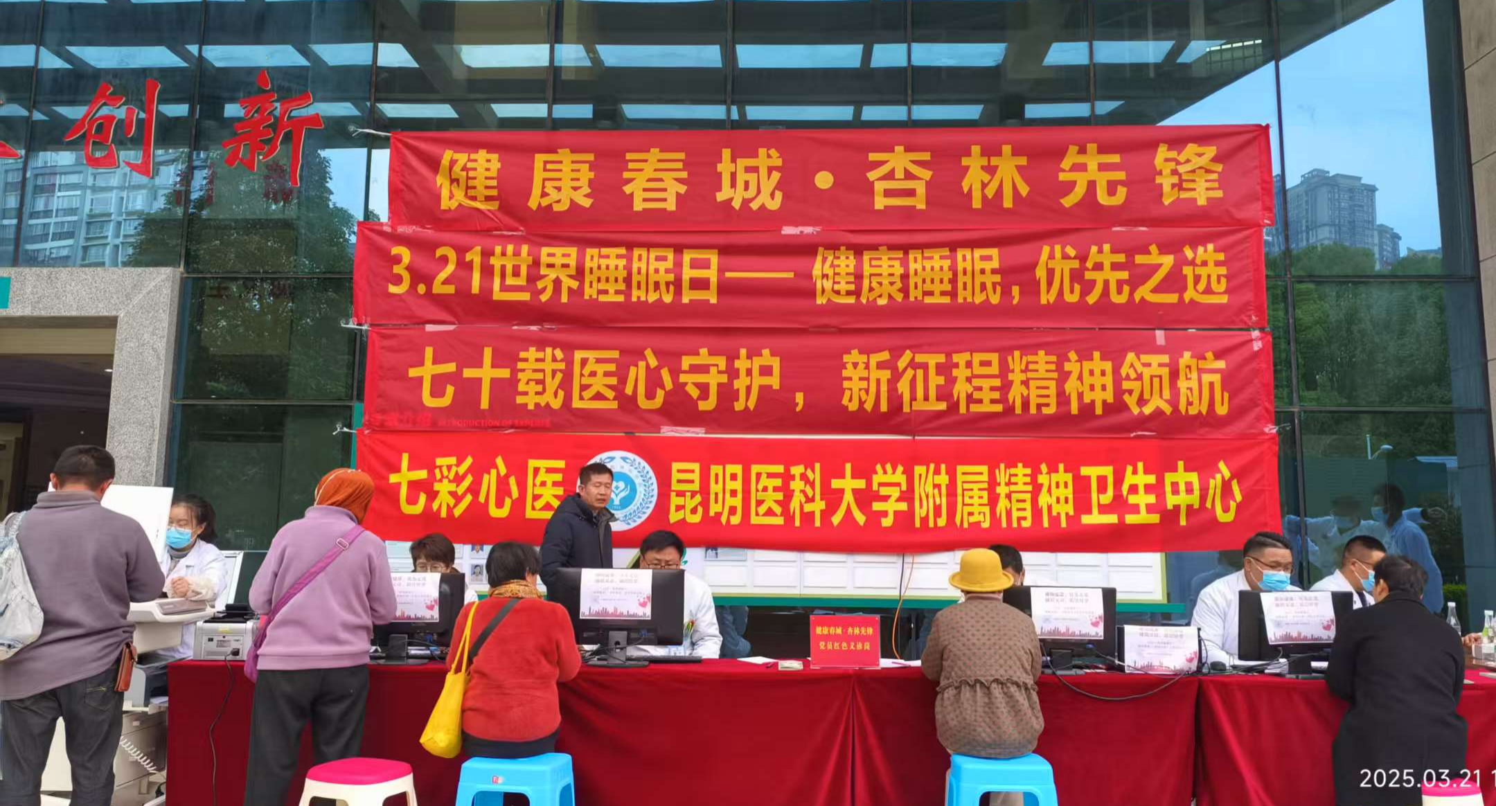 在快節(jié)奏的現(xiàn)代生活中,睡眠問題已成為一個(gè)普遍的社會(huì)現(xiàn)象。3月21日,在第24個(gè)“世界睡眠日”(2025年)到來之際,為喚起全民對睡眠重要性的認(rèn)識(shí),云南省精神病醫(yī)院睡眠醫(yī)學(xué)中心在院前廣場隆重舉行了“健康春城 杏林先鋒”紅色義診宣傳活動(dòng),旨在為廣大市民提供專業(yè)的睡眠健康咨詢與診療服務(wù),普及睡眠知識(shí),提高公眾對睡眠健康的重視程度。
