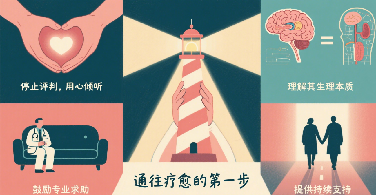 理解其生理本質: 認識到這些癥狀是真實的、有生物學基礎的痛苦,如同身體其他器官生病一樣。沒有人會選擇讓自己持續(xù)陷入這樣的痛苦。