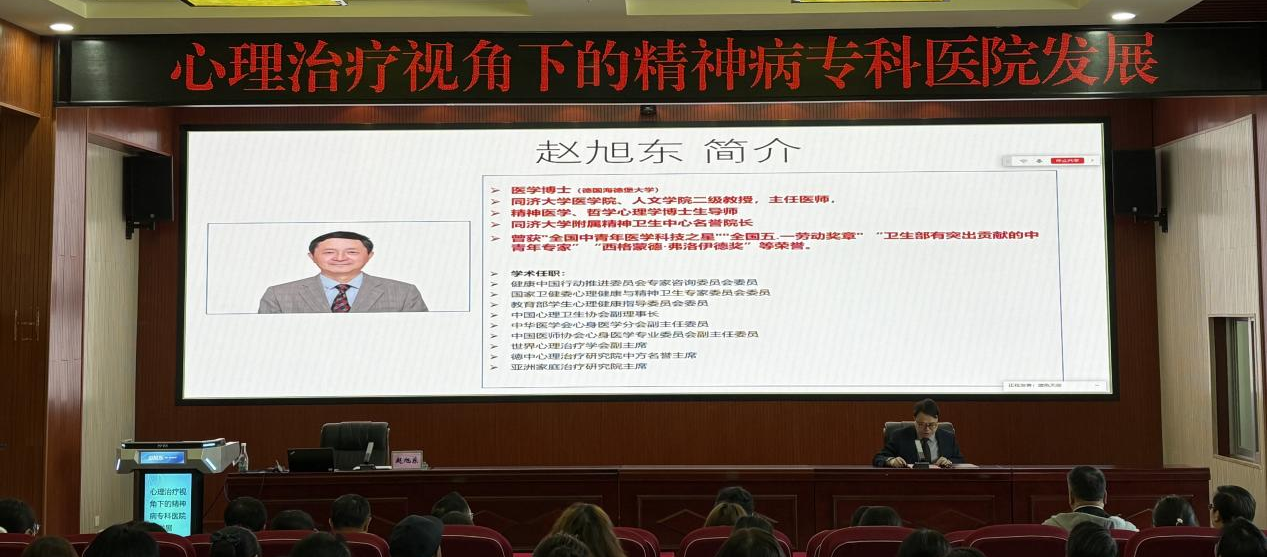 在本次講座中,趙旭東教授首先回顧了國(guó)內(nèi)外心理治療領(lǐng)域的發(fā)展歷程,對(duì)比分析了國(guó)內(nèi)外現(xiàn)狀,并指出國(guó)內(nèi)在心理治療領(lǐng)域仍存在諸多局限,他從精神醫(yī)學(xué)界的哲學(xué)與倫理學(xué)反思、社會(huì)系統(tǒng)中的心理治療與心理咨詢(xún)、臨床醫(yī)學(xué)系統(tǒng)中的心理治療三個(gè)維度,深入淺出地闡述了心理治療在精神病專(zhuān)科醫(yī)院發(fā)展中的重要作用。他強(qiáng)調(diào),精神醫(yī)學(xué)不僅僅是疾病的治療,更應(yīng)關(guān)注患者的心理和社會(huì)功能康復(fù),這就需要我們加強(qiáng)哲學(xué)和倫理學(xué)反思,構(gòu)建更加人性化的醫(yī)療模式。