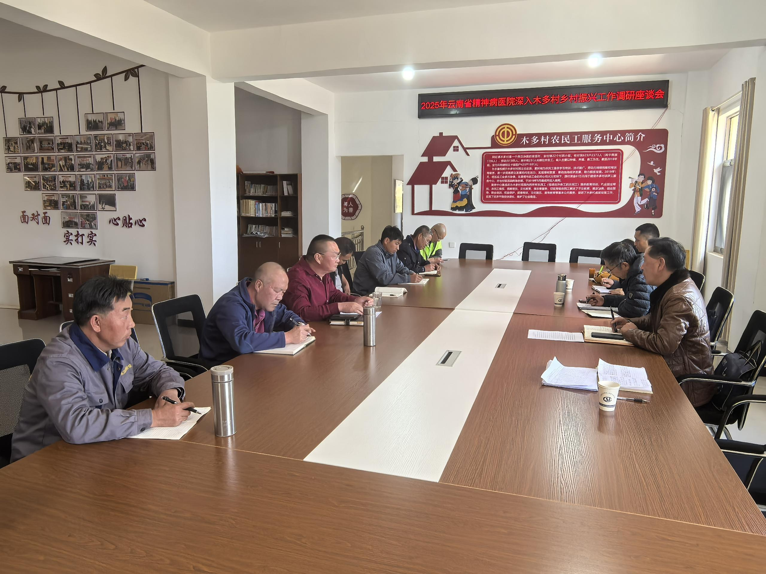 抵達(dá)木多村后,院長(zhǎng)一行首先與木多村 “兩委” 班子及駐村工作隊(duì)員、駐村第一書記張寶洪同志進(jìn)行了座談。會(huì)上,駐村第一書記張寶洪同志詳細(xì)介紹了2024年工作開展情況,并對(duì)2025年鄉(xiāng)村振興工作重點(diǎn)進(jìn)行匯報(bào)。同時(shí),對(duì)2025年鄉(xiāng)村振興工作中,木多存在產(chǎn)業(yè)發(fā)展、基礎(chǔ)設(shè)施建設(shè)、公共服務(wù)提升等方面的現(xiàn)狀與面臨的挑戰(zhàn)。尤其在醫(yī)療衛(wèi)生方面,木多村地處偏遠(yuǎn),精神衛(wèi)生知識(shí)普及程度低,村民對(duì)常見精神疾病認(rèn)知不足,缺乏專業(yè)的心理疏導(dǎo)渠道。
