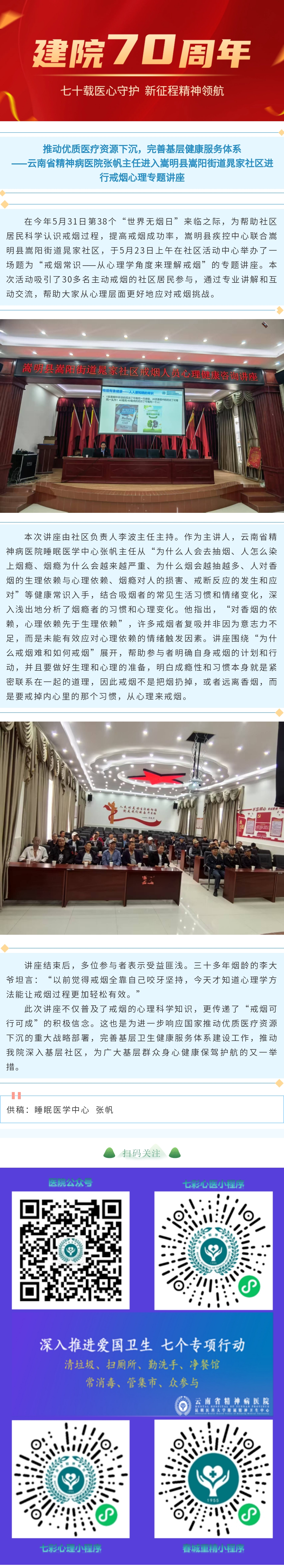 推動(dòng)優(yōu)質(zhì)醫(yī)療資源下沉,完善基層健康服務(wù)體系 ——云南省精神病醫(yī)院張帆主任進(jìn)入嵩明縣嵩陽街道晁家社區(qū)進(jìn)行戒煙心理專題講座