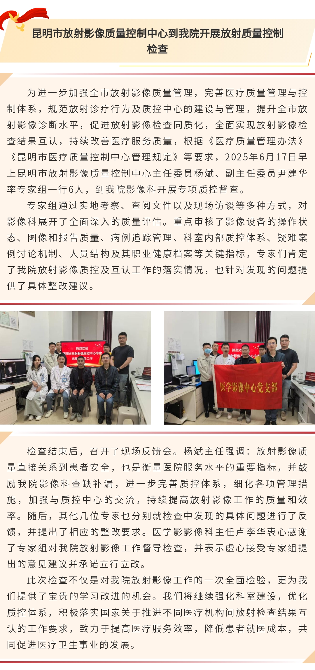 昆明市放射影像質(zhì)量控制中心到我院開展放射質(zhì)量控制檢查