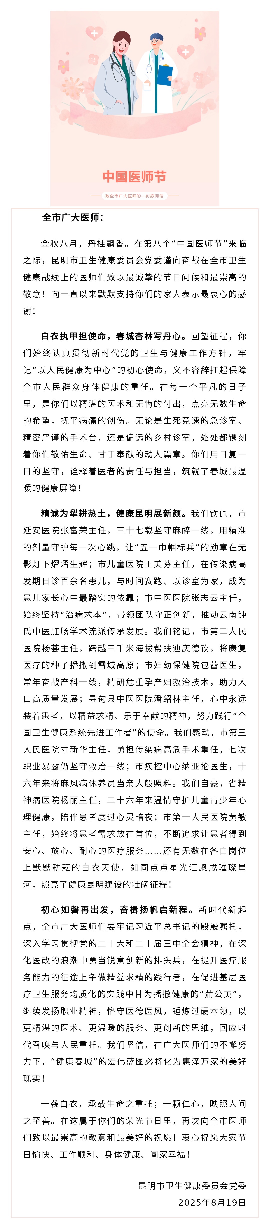 致全市廣大醫(yī)師的一封慰問信