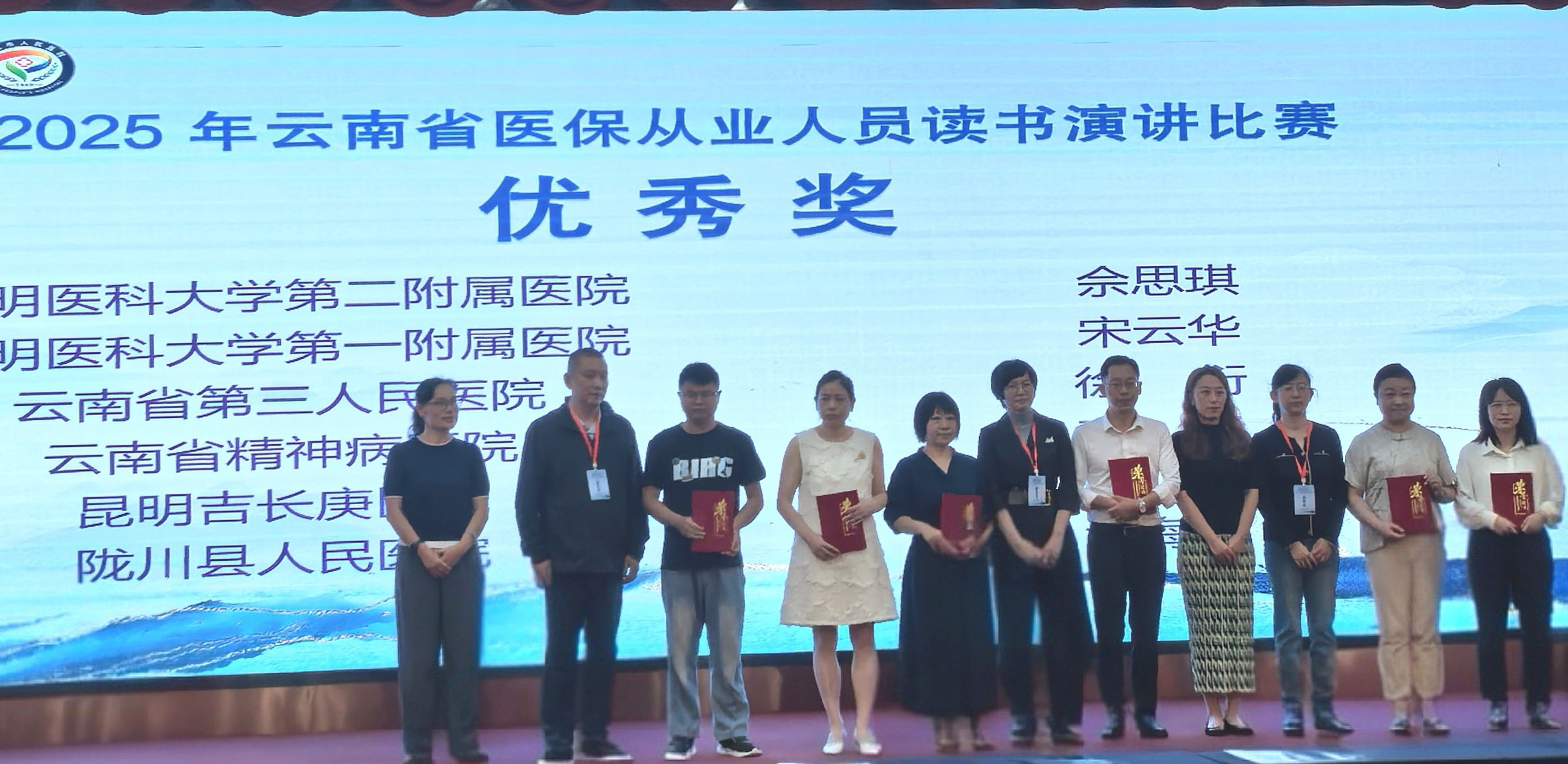2025年8月22日,由云南省醫(yī)院協(xié)會主辦,云南省醫(yī)院協(xié)會醫(yī)院醫(yī)療保障專業(yè)委員會承辦的“2025年云南省醫(yī)保從業(yè)人員讀書演講比賽決賽”在普洱市舉行。在決賽中,我院參賽代表發(fā)揮平穩(wěn),闡述了我院醫(yī)保工作從業(yè)人員團隊扎實的專業(yè)基礎及耐心為精神病特殊群體服務的情懷,獲得了優(yōu)秀獎。