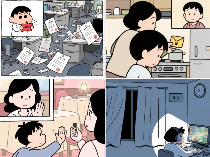 32歲的小楊就是典型例子:大學(xué)畢業(yè)后,他先后在互聯(lián)網(wǎng)、教育、電商行業(yè)工作,每次遇到加班、同事矛盾或領(lǐng)導(dǎo)批評(píng),就會(huì)以“工作不適合自己”為由辭職。如今他在家待業(yè)兩年,每天抱著電腦打游戲到凌晨,房租和生活費(fèi)全靠父母承擔(dān)。父母勸他找份穩(wěn)定工作,他卻反駁:“我想做自己喜歡的事,不想被生活綁架,你們別管我。”